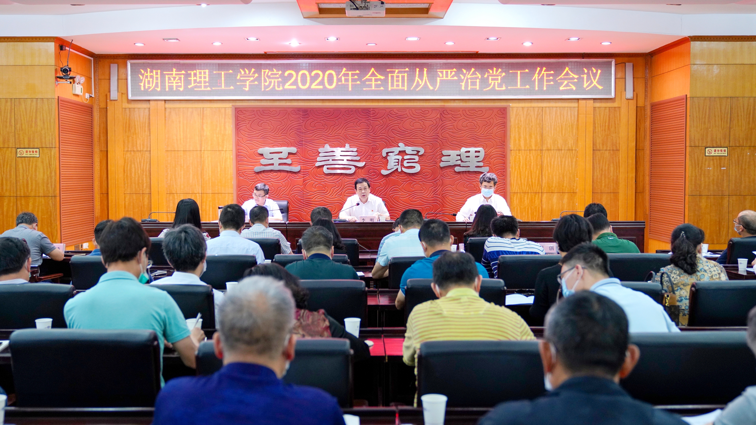 5月26日上午,校党委书记李明出席全面从严治党工作会议并讲话,校党委副书记、校长卢先明主持