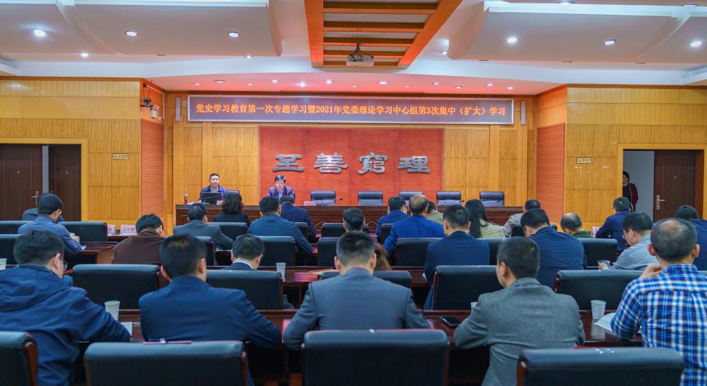 3月30日,学校党委举行党史学习教育第一次专题学习暨党委理论学习中心组2021年度第三次集中(扩大)学习