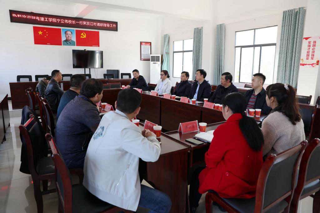 宁立伟强调,要按照“产业兴旺、生态宜居、乡风文明、治理有效、生活富裕”的总要求,系统考虑、做好规划,着力以产业振兴吸引资源、留住人才、带动发展,探索乡村振兴的特色发展之路。要育好文明乡风,加强党对农村工作的全面领导,提高党的农村基层组织建设质量,发挥好党建引领作用,充分利用学校的优势资源,助力双江村公共文化建设、美丽乡村建设等,促进乡村经济、政治、文化等全面振兴。