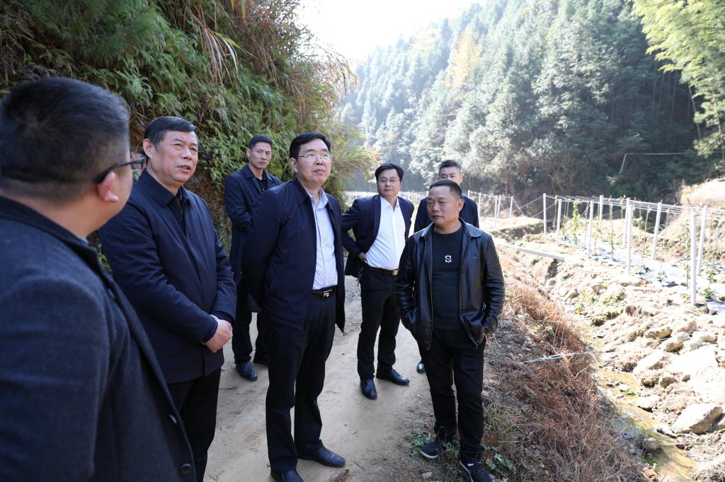 在平江县浯口镇双江村,宁立伟一行来到养殖基地,详细了解养鸭场、养鸡场的养殖情况,对双江村的产业发展表示赞扬。宁立伟一行还察看了双江村中药材“黑老虎”种植基地,详细了解了“黑老虎”种植基地的生产、销售等情况。宁立伟对双江村大力发展“黑老虎”种植,推动高科技、高质量的种植产业发展表示肯定。