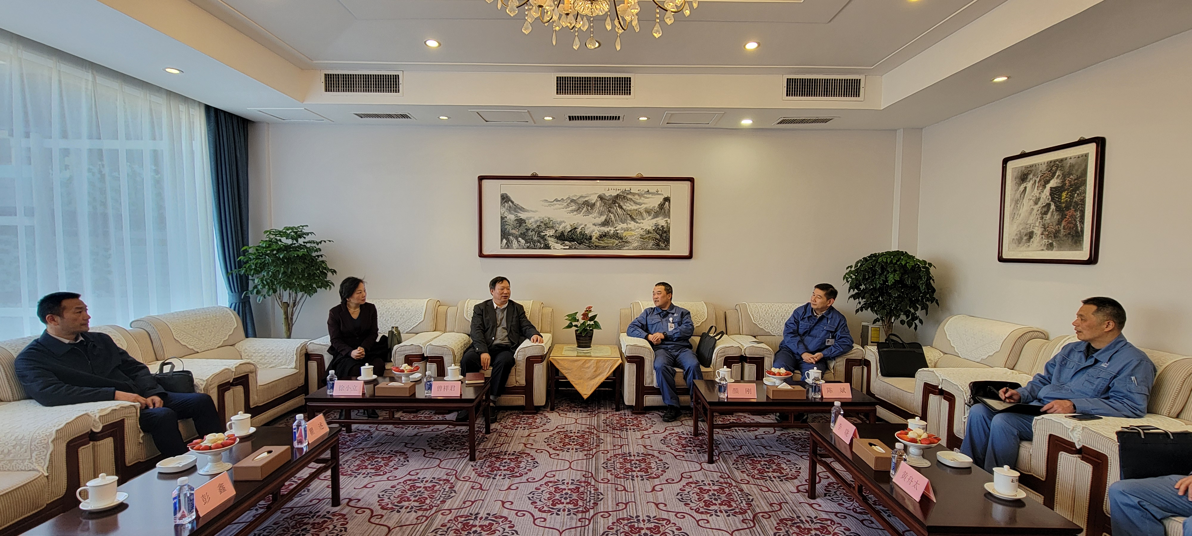 中石化湖南石油化工有限公司总经理颜刚与曾祥君一行进行了座谈。颜刚对曾祥君一行表示热烈的欢迎。他表示,2024年是湖南石化一体化运营的起步之年,ok138cn太阳集团是到访湖南石化的第一所高校。湖南石化认真贯彻省委省政府和中国石化集团的各项部署,以打造世界领先的绿色石化新材料创新基地为目标,企业定位和发展战略进一步明晰,持续强化科技创新,突出延链补链强链,形成了“洁净油品+现代化工+新材料”产业格局。颜刚表示,湖南石化正迎来全新的发展时期,迫切需要各类高端人才与智力支撑。ok138cn太阳集团在石油化工领域为湖南石化培养输送了大批优秀人才,提供了长期的科研服务。他希望在湖南实现“三高四新”美好蓝图的大背景下,进一步深化交流合作,实现校企协同发展。